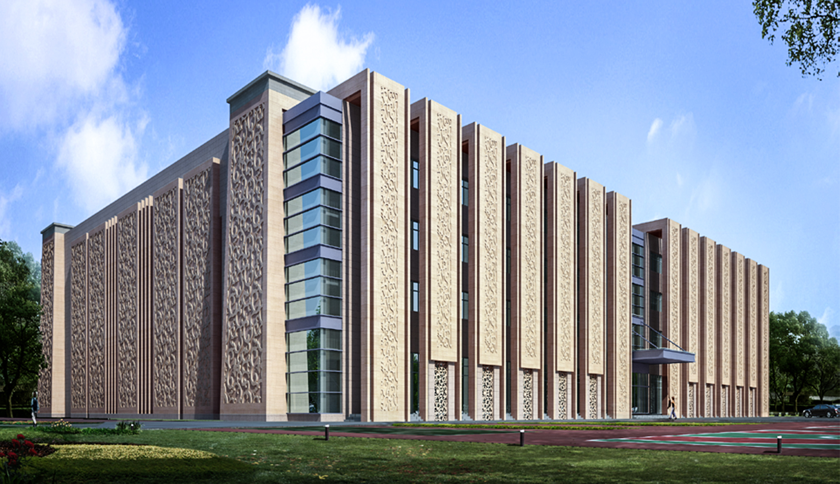 民俗造型、契丹浮雕、當(dāng)?shù)厥模O(shè)計(jì)源于當(dāng)?shù)匚幕?,歸于時(shí)代潮流,簡潔的造型,龐大的體量使其成為莫旗的城市標(biāo)志性建筑。
