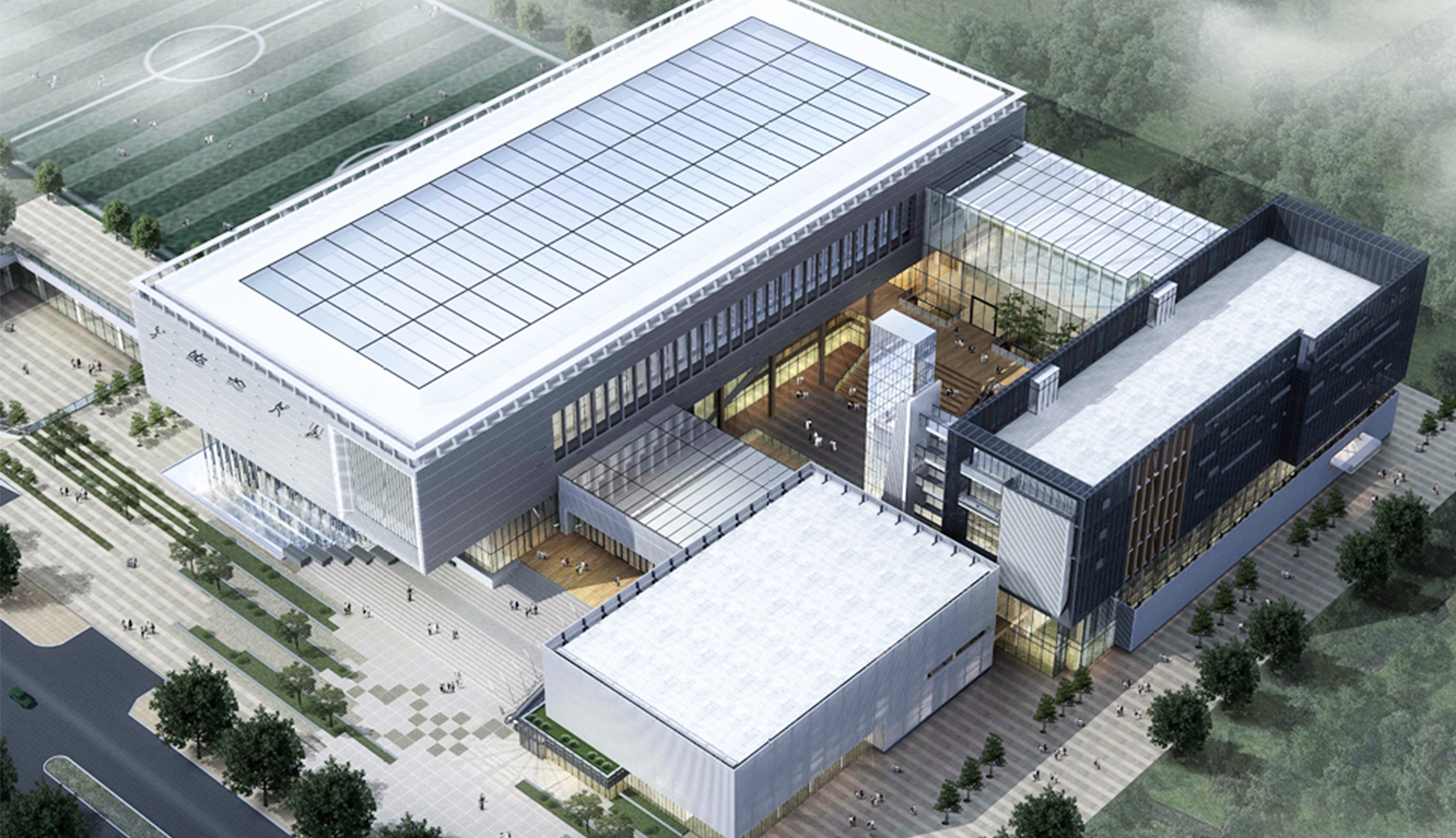 改造舊建筑加以利用,樹立舊建筑改造升級的典范尊重場地文化記憶,被改造建筑成為文化的載體,服務(wù)于文化活動版塊。與新建體育健身板塊形成“左文右武”的格局。建筑邏輯、景觀邏輯、文化邏輯、新技術(shù)、新材料、立體綠化、生態(tài)空間、景觀與建筑的有機(jī)結(jié)合。