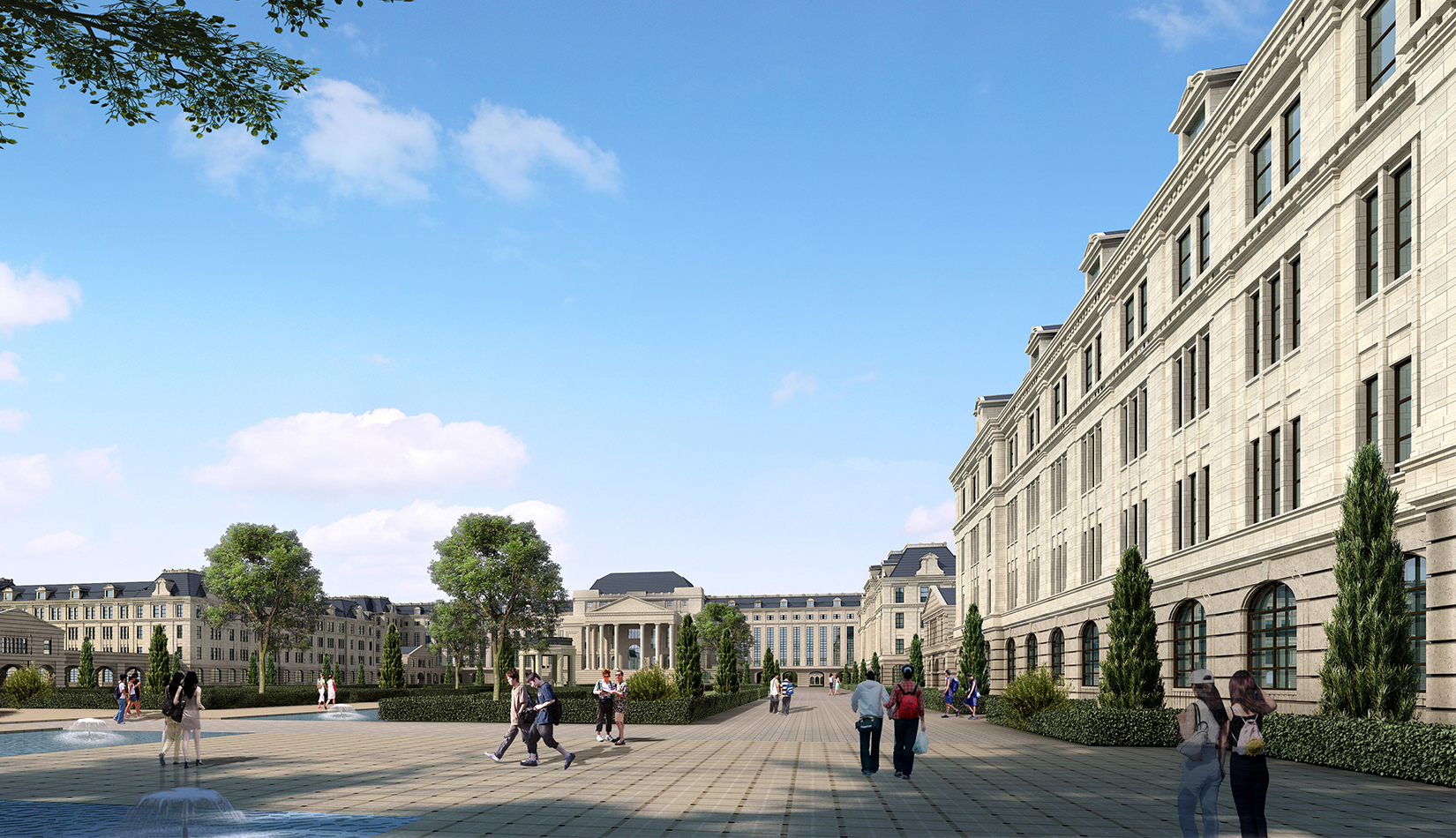 注重中軸對(duì)稱(chēng)關(guān)系與建筑的對(duì)景,注重廣場(chǎng)所形成的儀式感