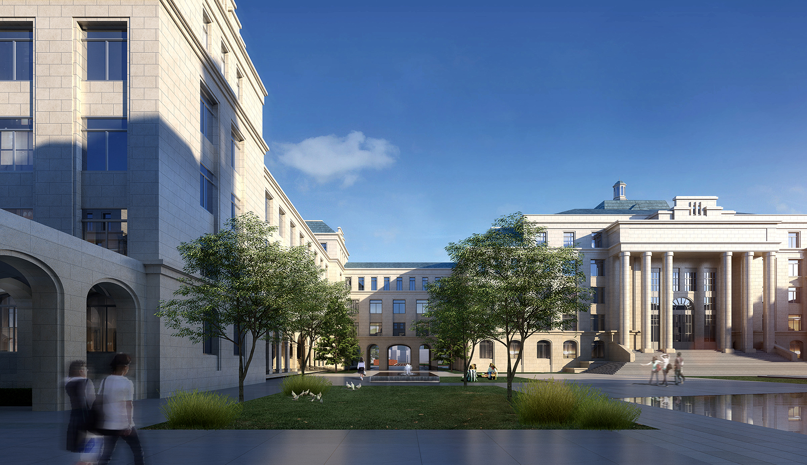 景觀設(shè)計(jì)引用了《禮記聘義》中對(duì)玉的六大特征:“禮”“知” “樂(lè)” “信”“義”“仁”作為景觀主題植入學(xué)校各個(gè)重要空間。