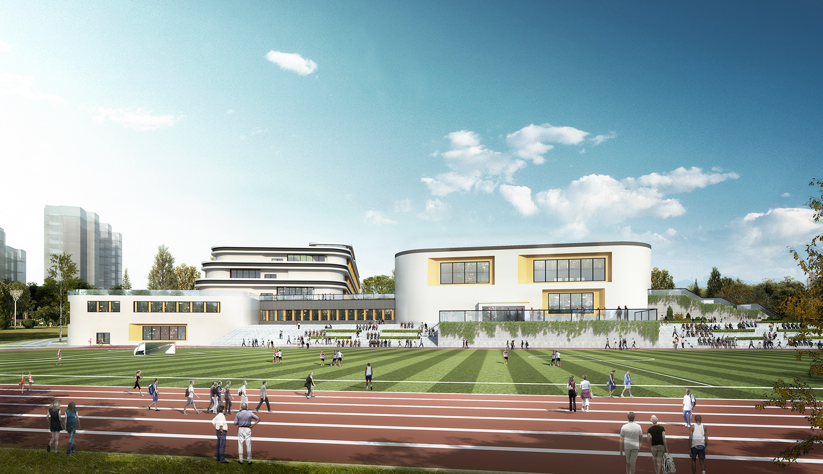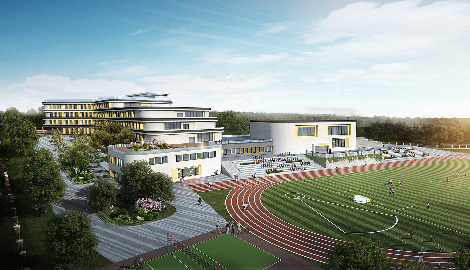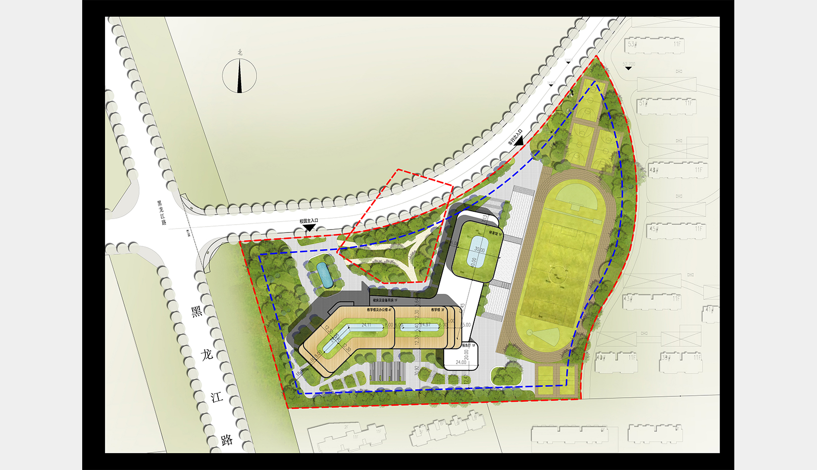 功能分區(qū)遵循“教學(xué)—觀演—運(yùn)動(dòng)”三點(diǎn)式布局原則,各功能之間聯(lián)系緊密,流線合理清晰。不再鋪設(shè)走廊,將連接性空間設(shè)計(jì)成“學(xué)習(xí)小徑”,從而創(chuàng)造更實(shí)用的空間以及一個(gè)更有效的建筑,同時(shí)營(yíng)造出一種“學(xué)習(xí)無(wú)處不在”的氛圍。