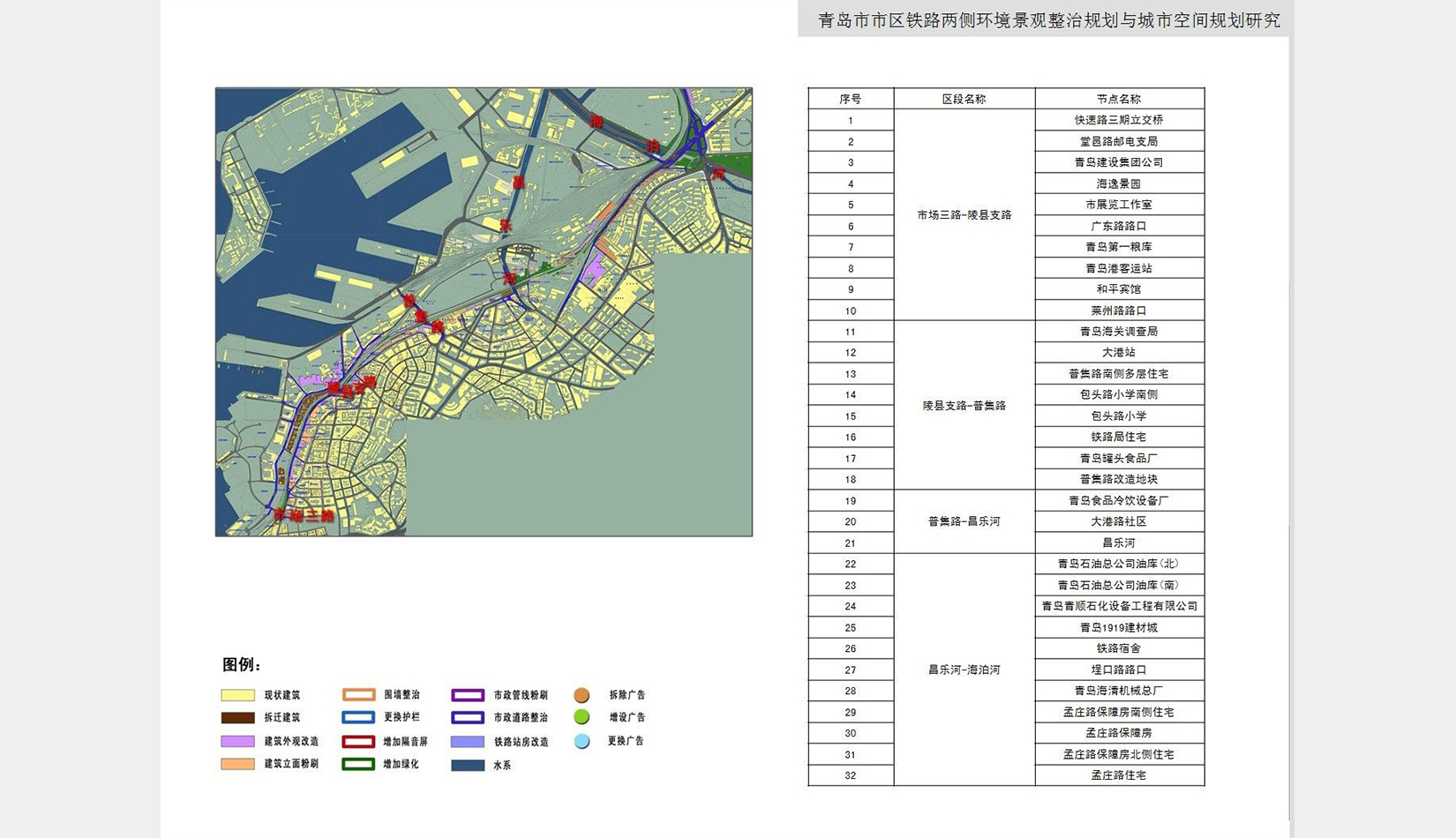 按照”一個目標、分期實施、統(tǒng)一組織”的總體要求,規(guī)劃將鐵路沿線打造成為:體現(xiàn)青島城市規(guī)劃建設(shè)與管理水平的窗口; 展示青島城市熱情友好與和諧的笑臉;感受青島特色魅力與城市功能優(yōu)化提升的風(fēng)景線。