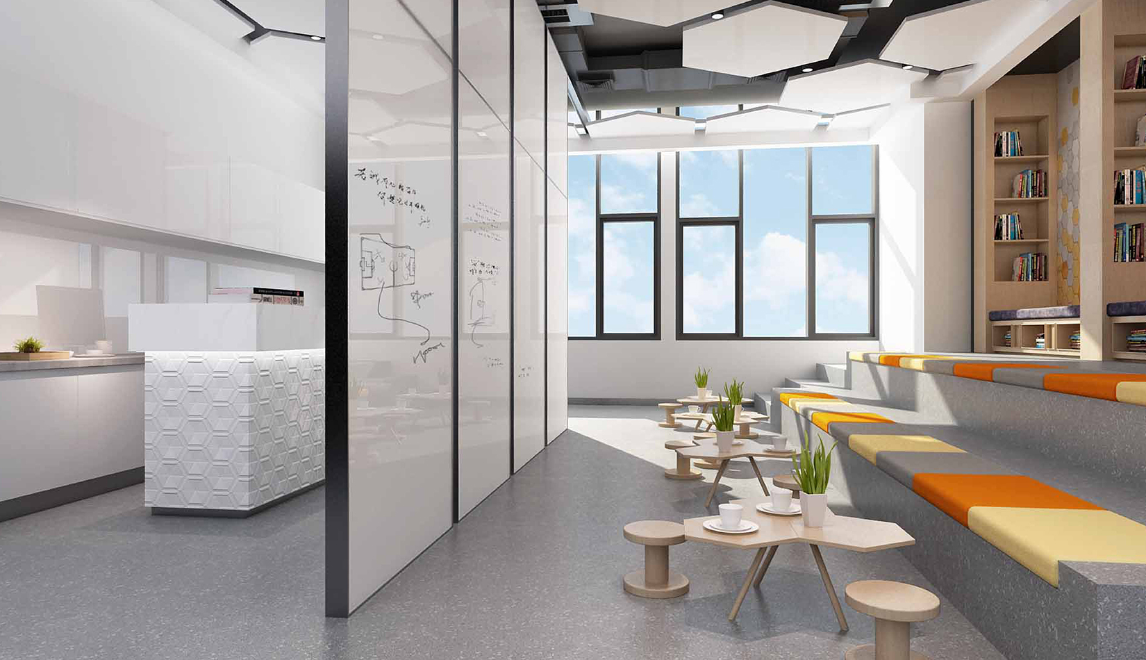 前臺(tái)營造一種開放式的交流空間,為入住者提供一個(gè)充滿活力的社交空間、資源共享空間、閱讀空間,包括水吧、讓你放松的圖書館,還可承辦各種活動(dòng),時(shí)尚的設(shè)計(jì)以及獨(dú)特的個(gè)性,便于大家面對面溝通和社交體驗(yàn)。